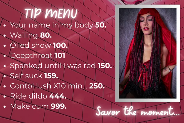 Догі-стайл, Еротичні танці, Спанкінг, Рогоносці, Мастурбація пальцями, Брудні розмови, Фут-фетиш, Ахеґао, Анал, Дилдо або вібратор, Стр иптиз, Еякуляція, Глибоке горло, Рольові ігри, Підбори, З дупи до рота, Приниження, Iгри зі спермою, Анальні іграшки, Мастурбація, Мастурбація рукою, Приниження крихітного пеніса, Поза вершниці, Тверкінг